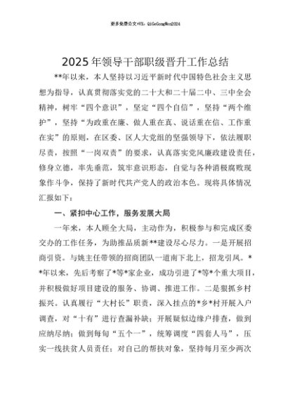 【七哥公文】2025年:【七哥公文】2025年领导干部职级晋升工作总结+更多免费公文+VX:QiGeGongWen2024+更多免费公文+VX:QiGeGongWen2024