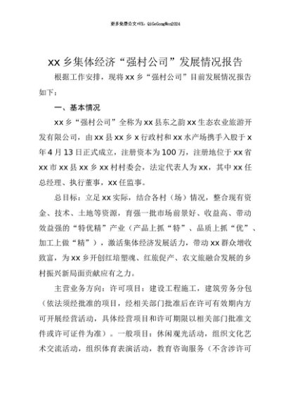 【七哥公文】2025年:【七哥公文】xx乡集体经济“强村公司”发展情况报告+更多免费公文+VX:QiGeGongWen2024+更多免费公文+VX:QiGeGongWen2024