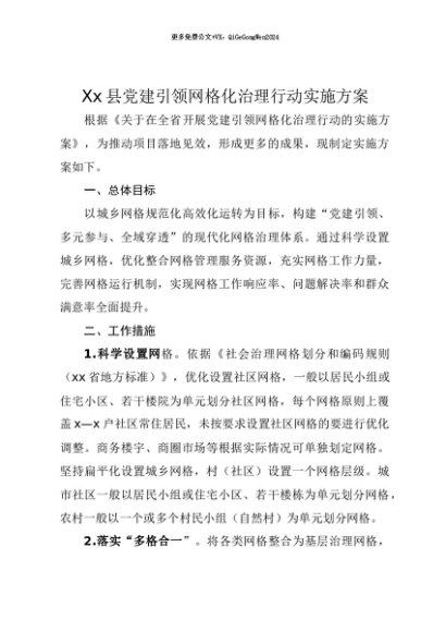 【七哥公文】2025年:【七哥公文】Xx县党建引领网格化治理行动实施方案+更多免费公文+VX:QiGeGongWen2024+更多免费公文+VX:QiGeGongWen2024