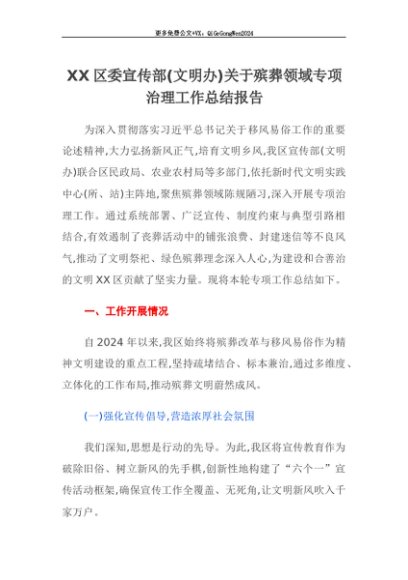 【七哥公文】2025年:【七哥公文】XX区委宣传部(文明办)关于殡葬领域专项治理工作总结报告+更多免费公文+VX:QiGeGongWen2024+更多免费公文+VX:QiGeGongWen2024