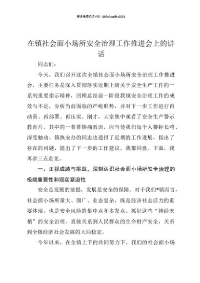 【七哥公文】2025年:【七哥公文】在镇社会面小场所安全治理工作推进会上的讲话+更多免费公文+VX:QiGeGongWen2024+更多免费公文+VX:QiGeGongWen2024