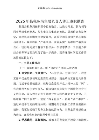 【七哥公文】2025年:【七哥公文】2025年县税务局主要负责人转正述职报告+更多免费公文+VX:QiGeGongWen2024+更多免费公文+VX:QiGeGongWen2024