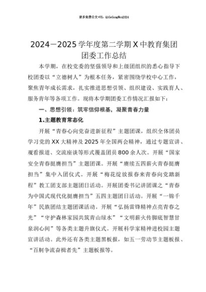 【七哥公文】2025年:【七哥公文】2024-2025学年度第二学期X中教育集团团委工作总结+更多免费公文+VX:QiGeGongWen2024+更多免费公文+VX:QiGeGongWen2024