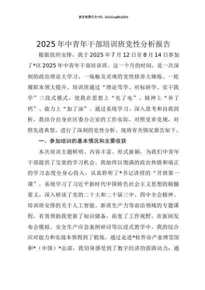 【七哥公文】2025年:【七哥公文】2025年中青年干部培训班党性分析报告+更多免费公文+VX:QiGeGongWen2024+更多免费公文+VX:QiGeGongWen2024