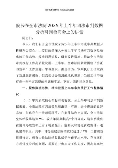 【七哥公文】2025年:【七哥公文】院长在全市法院2025年上半年司法审判数据分析研判会商会上的讲话+更多免费公文+VX:QiGeGongWen2024+更多免费公文+VX:QiGeGongWen2024