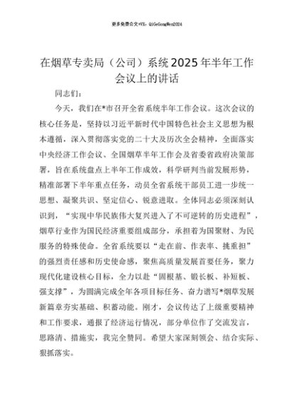 【七哥公文】2025年:【七哥公文】在烟草专卖局(公司)系统2025年半年工作会议上的讲话+更多免费公文+VX:QiGeGongWen2024+更多免费公文+VX:QiGeGongWen2024