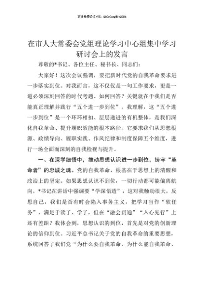 【七哥公文】2025年:【七哥公文】在市人大常委会党组理论学习中心组集中学习研讨会上的发言+更多免费公文+VX:QiGeGongWen2024+更多免费公文+VX:QiGeGongWen2024