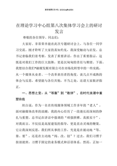 【七哥公文】2025年:【七哥公文】在理论学习中心组第八次集体学习会上的研讨发言+更多免费公文+VX:QiGeGongWen2024+更多免费公文+VX:QiGeGongWen2024