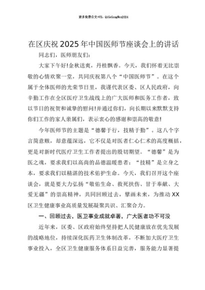 【七哥公文】2025年:【七哥公文】在区庆祝2025年中国医师节座谈会上的讲话+更多免费公文+VX:QiGeGongWen2024+更多免费公文+VX:QiGeGongWen2024