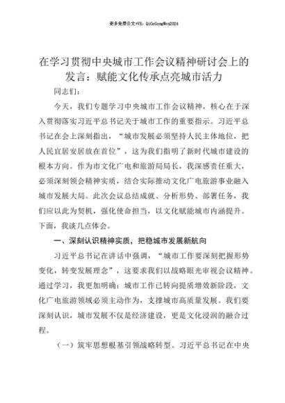 【七哥公文】2025年:【七哥公文】在学习贯彻中央城市工作会议精神研讨会上的发言:赋能文化传承点亮城市活力+更多免费公文+VX:QiGeGongWen2024+更多免费公文+VX:QiGeGongWen2024