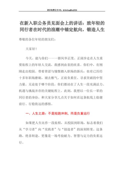 【七哥公文】2025年:【七哥公文】在新入职公务员见面会上的讲话:致年轻的同行者在时代的浪潮中锚定航向,锻造人生+更多免费公文+VX:QiGeGongWen2024+更多免费公文+VX:QiGeGongWen2024
