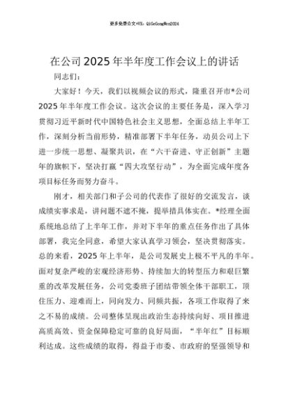 【七哥公文】2025年:【七哥公文】在公司2025年半年度工作会议上的讲话+更多免费公文+VX:QiGeGongWen2024+更多免费公文+VX:QiGeGongWen2024