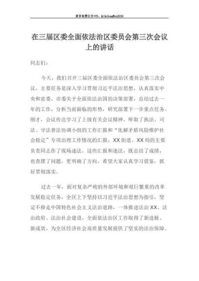 【七哥公文】2025年:【七哥公文】在三届区委全面依法治区委员会第三次会议上的讲话+更多免费公文+VX:QiGeGongWen2024+更多免费公文+VX:QiGeGongWen2024