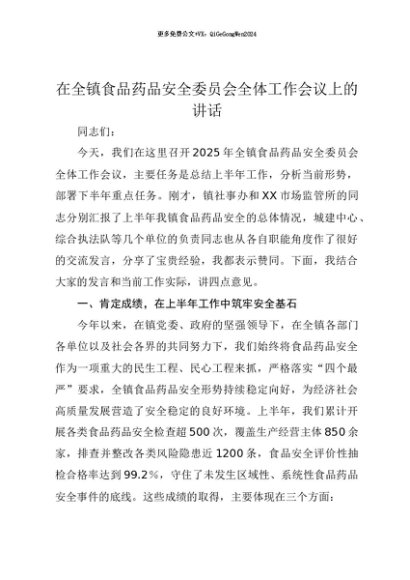 【七哥公文】2025年:【七哥公文】在全镇食品药品安全委员会全体工作会议上的讲话+更多免费公文+VX:QiGeGongWen2024+更多免费公文+VX:QiGeGongWen2024
