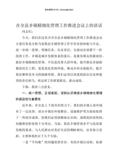 【七哥公文】2025年:【七哥公文】在全县乡镇精细化管理工作推进会议上的讲话+更多免费公文+VX:QiGeGongWen2024+更多免费公文+VX:QiGeGongWen2024