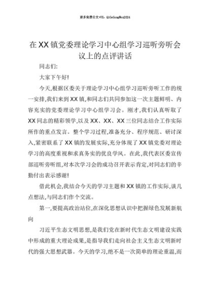 【七哥公文】2025年:【七哥公文】在XX镇党委理论学习中心组学习巡听旁听会议上的点评讲话+更多免费公文+VX:QiGeGongWen2024+更多免费公文+VX:QiGeGongWen2024