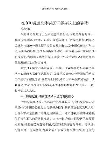 【七哥公文】2025年:【七哥公文】在XX街道全体街居干部会议上的讲话+更多免费公文+VX:QiGeGongWen2024+更多免费公文+VX:QiGeGongWen2024