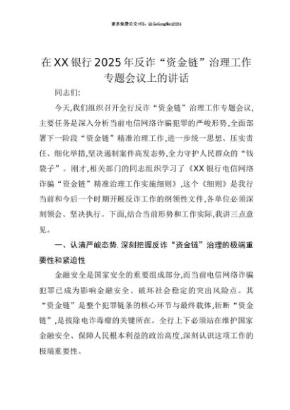 【七哥公文】2025年:【七哥公文】在XX银行2025年反诈“资金链”治理工作专题会议上的讲话+更多免费公文+VX:QiGeGongWen2024+更多免费公文+VX:QiGeGongWen2024