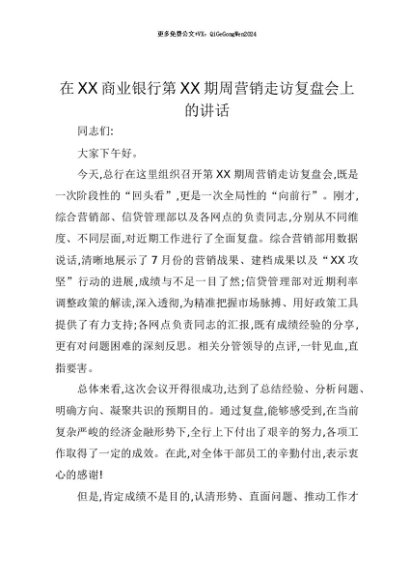 【七哥公文】2025年:【七哥公文】在XX商业银行第XX期周营销走访复盘会上的讲话+更多免费公文+VX:QiGeGongWen2024+更多免费公文+VX:QiGeGongWen2024