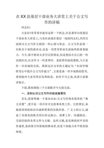 【七哥公文】2025年:【七哥公文】在XX县基层干部业务大讲堂上关于公文写作的讲稿+更多免费公文+VX:QiGeGongWen2024+更多免费公文+VX:QiGeGongWen2024