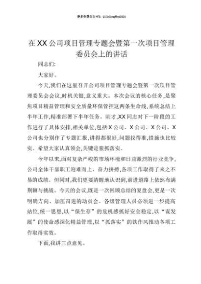 【七哥公文】2025年:【七哥公文】在XX公司项目管理专题会暨第一次项目管理委员会上的讲话+更多免费公文+VX:QiGeGongWen2024+更多免费公文+VX:QiGeGongWen2024