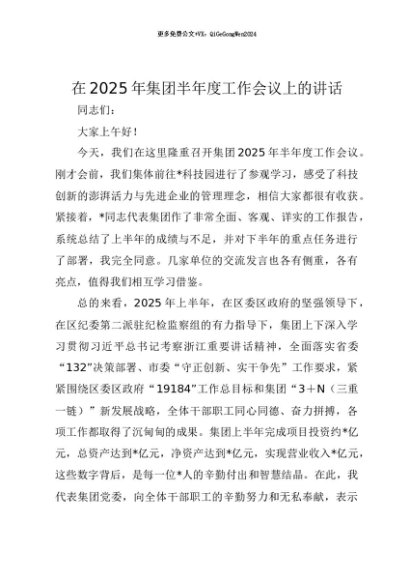 【七哥公文】2025年:【七哥公文】在2025年集团半年度工作会议上的讲话+更多免费公文+VX:QiGeGongWen2024+更多免费公文+VX:QiGeGongWen2024