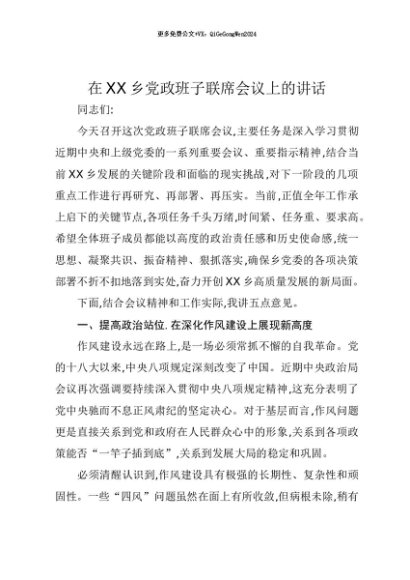 【七哥公文】2025年:【七哥公文】在XX乡党政班子联席会议上的讲话+更多免费公文+VX:QiGeGongWen2024+更多免费公文+VX:QiGeGongWen2024