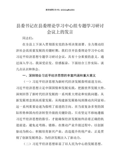 【七哥公文】2025年:【七哥公文】县委书记在县委理论学习中心组专题学习研讨会议上的发言+更多免费公文+VX:QiGeGongWen2024+更多免费公文+VX:QiGeGongWen2024