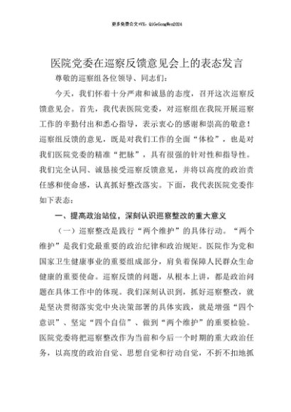 【七哥公文】2025年:【七哥公文】医院党委在巡察反馈意见会上的表态发言+更多免费公文+VX:QiGeGongWen2024+更多免费公文+VX:QiGeGongWen2024