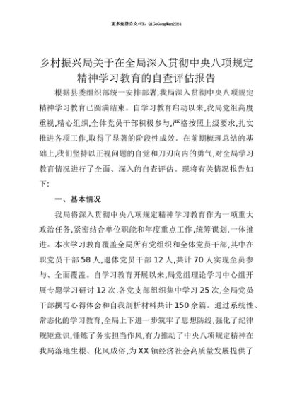 【七哥公文】2025年:【七哥公文】乡村振兴局关于在全局深入贯彻中央八项规定精神学习教育的自查评估报告+更多免费公文+VX:QiGeGongWen2024+更多免费公文+VX:QiGeGongWen2024