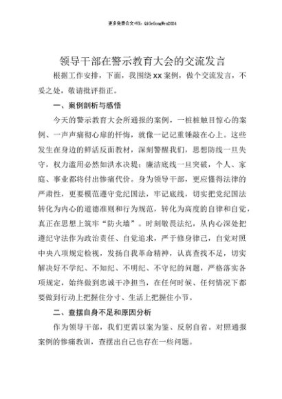 【七哥公文】2025年:【七哥公文】领导干部在警示教育大会的交流发言+更多免费公文+VX:QiGeGongWen2024+更多免费公文+VX:QiGeGongWen2024