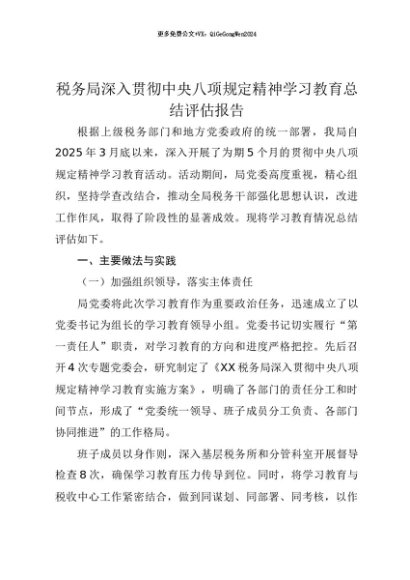 【七哥公文】2025年:【七哥公文】税务局深入贯彻中央八项规定精神学习教育总结评估报告+更多免费公文+VX:QiGeGongWen2024+更多免费公文+VX:QiGeGongWen2024