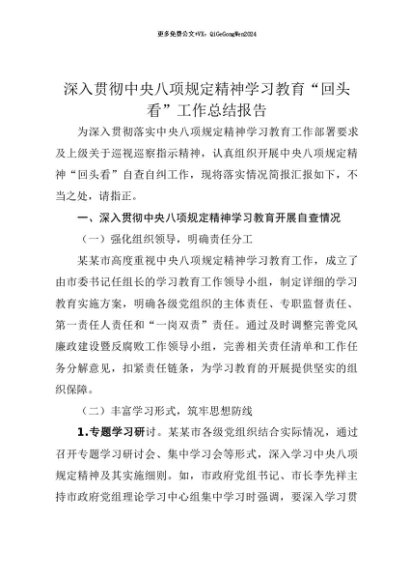 【七哥公文】2025年:【七哥公文】深入贯彻中央八项规定精神学习教育“回头看”工作总结报告+更多免费公文+VX:QiGeGongWen2024+更多免费公文+VX:QiGeGongWen2024