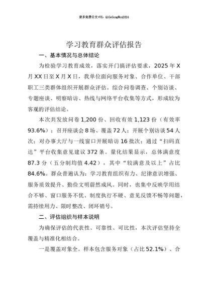 【七哥公文】2025年:【七哥公文】贯彻中央八项规定精神学习教育群众评估报告2+更多免费公文+VX:QiGeGongWen2024+更多免费公文+VX:QiGeGongWen2024