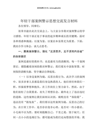 【七哥公文】2025年:【七哥公文】年轻干部案例警示思想交流发言材料+更多免费公文+VX:QiGeGongWen2024+更多免费公文+VX:QiGeGongWen2024