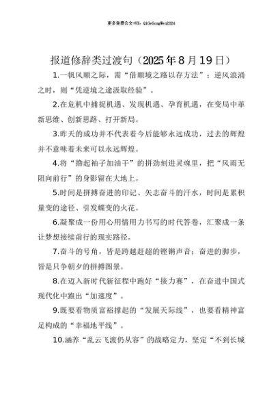 【七哥公文】2025年:【七哥公文】报道修辞类过渡句(2025年8月19日)+更多免费公文+VX:QiGeGongWen2024+更多免费公文+VX:QiGeGongWen2024