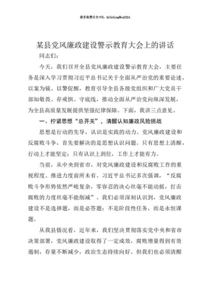【七哥公文】2025年:【七哥公文】某县党风廉政建设警示教育大会上的讲话+更多免费公文+VX:QiGeGongWen2024+更多免费公文+VX:QiGeGongWen2024