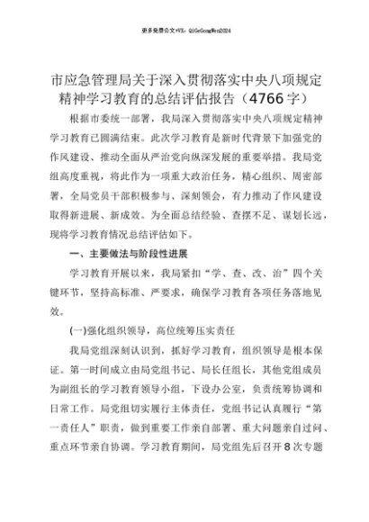 【七哥公文】2025年:【七哥公文】市应急管理局关于深入贯彻落实中央八项规定精神学习教育的总结评估报告(4766字)+更多免费公文+VX:QiGeGongWen2024+更多免费公文+VX:QiGeGongWen2024