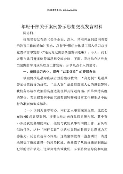 【七哥公文】2025年:【七哥公文】年轻干部关于案例警示思想交流发言材料+更多免费公文+VX:QiGeGongWen2024+更多免费公文+VX:QiGeGongWen2024