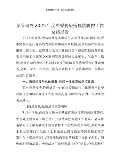 【七哥公文】2025年:【七哥公文】某管理处2025年度虫媒传染病疫情防控工作总结报告+更多免费公文+VX:QiGeGongWen2024+更多免费公文+VX:QiGeGongWen2024