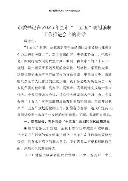 【七哥公文】2025年:【七哥公文】市委书记在2025年全市“十五五”规划编制工作推进会上的讲话+更多免费公文+VX:QiGeGongWen2024+更多免费公文+VX:QiGeGongWen2024