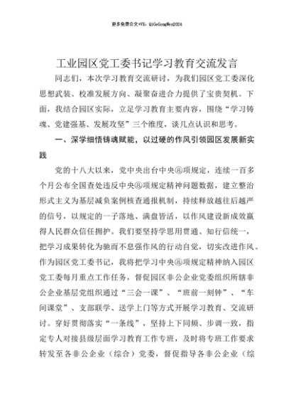 【七哥公文】2025年:【七哥公文】工业园区党工委书记贯彻中央八项规定精神学习教育交流发言+更多免费公文+VX:QiGeGongWen2024+更多免费公文+VX:QiGeGongWen2024
