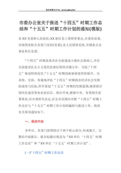 【七哥公文】2025年:【七哥公文】市委办公室关于报送“十四五”时期工作总结和“十五五”时期工作计划的通知(模版)+更多免费公文+VX:QiGeGongWen2024+更多免费公文+VX:QiGeGongWen2024