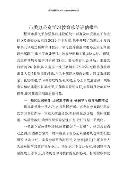 【七哥公文】2025年:【七哥公文】市委办公室贯彻中央八项规定精神学习教育总结评估报告+更多免费公文+VX:QiGeGongWen2024+更多免费公文+VX:QiGeGongWen2024