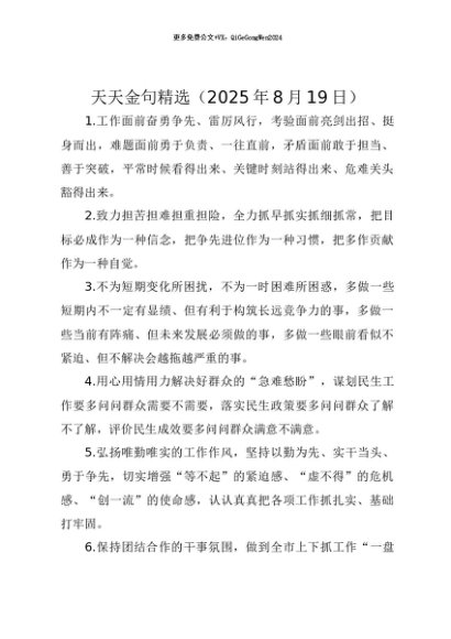 【七哥公文】2025年:【七哥公文】天天金句精选(2025年8月19日)+更多免费公文+VX:QiGeGongWen2024+更多免费公文+VX:QiGeGongWen2024
