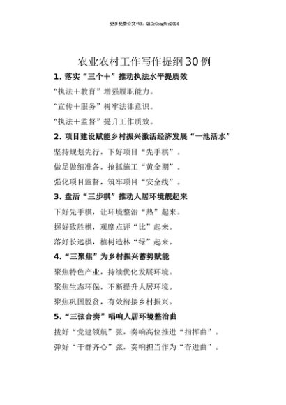 【七哥公文】2025年:【七哥公文】农业农村工作写作提纲30例+更多免费公文+VX:QiGeGongWen2024+更多免费公文+VX:QiGeGongWen2024