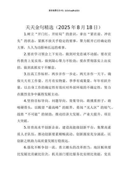 【七哥公文】2025年:【七哥公文】天天金句精选(2025年8月18日)+更多免费公文+VX:QiGeGongWen2024+更多免费公文+VX:QiGeGongWen2024