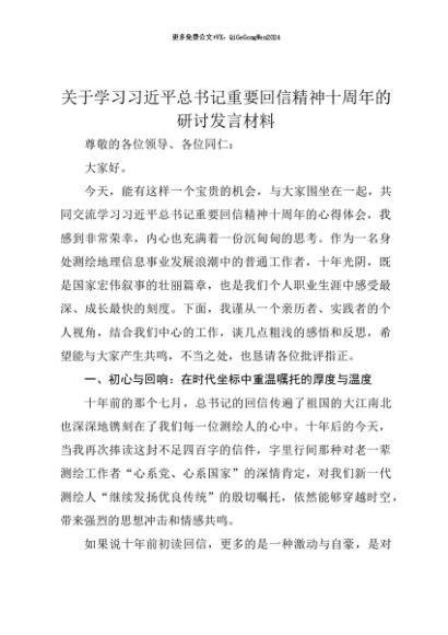 【七哥公文】2025年:【七哥公文】关于学习习近平总书记重要回信精神十周年的研讨发言材料+更多免费公文+VX:QiGeGongWen2024+更多免费公文+VX:QiGeGongWen2024