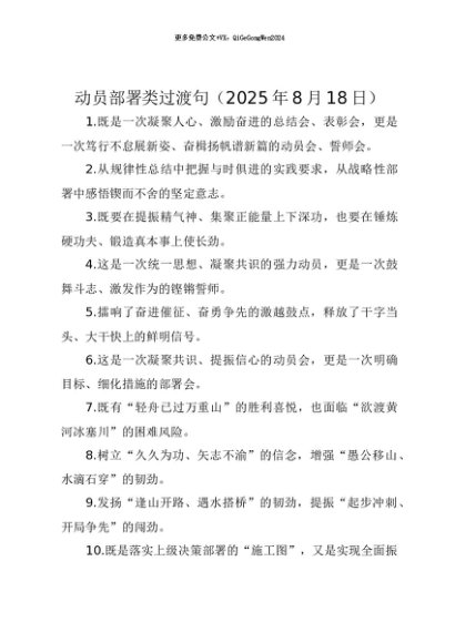 【七哥公文】2025年:【七哥公文】动员部署类过渡句(2025年8月18日)+更多免费公文+VX:QiGeGongWen2024+更多免费公文+VX:QiGeGongWen2024