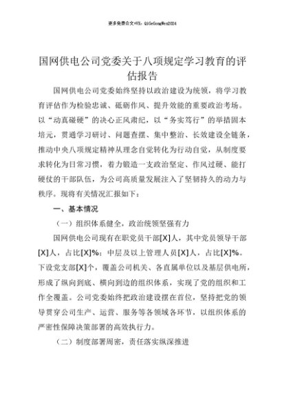 【七哥公文】2025年:【七哥公文】国网供电公司党委关于八项规定学习教育的评估报告+更多免费公文+VX:QiGeGongWen2024+更多免费公文+VX:QiGeGongWen2024